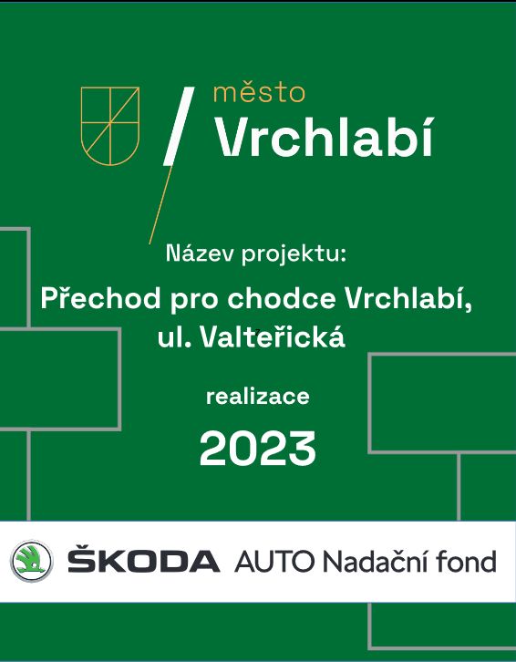 Projekt „Přechod pro chodce Vrchlabí, ul. Valteřická" byl spolufinancován z prostředků Nadačního fondu ŠKODA AUTO.